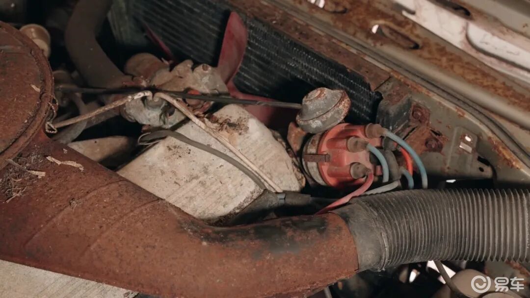 引擎盖一直保持敞开状态,车顶行李架在潮湿空气里彻底锈蚀,化作红色粉末,将车顶原本光亮的漆面染得斑驳不堪。