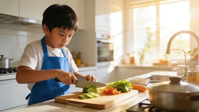这等于提前给了孩子一把开启幸福之门的钥匙——只要冰箱是满的,燃气炉可以点燃,厨房就是他能够一展才华、赢得赞许的小天地,他也会感觉到:原来,会做饭可以让生活变得如此美好。